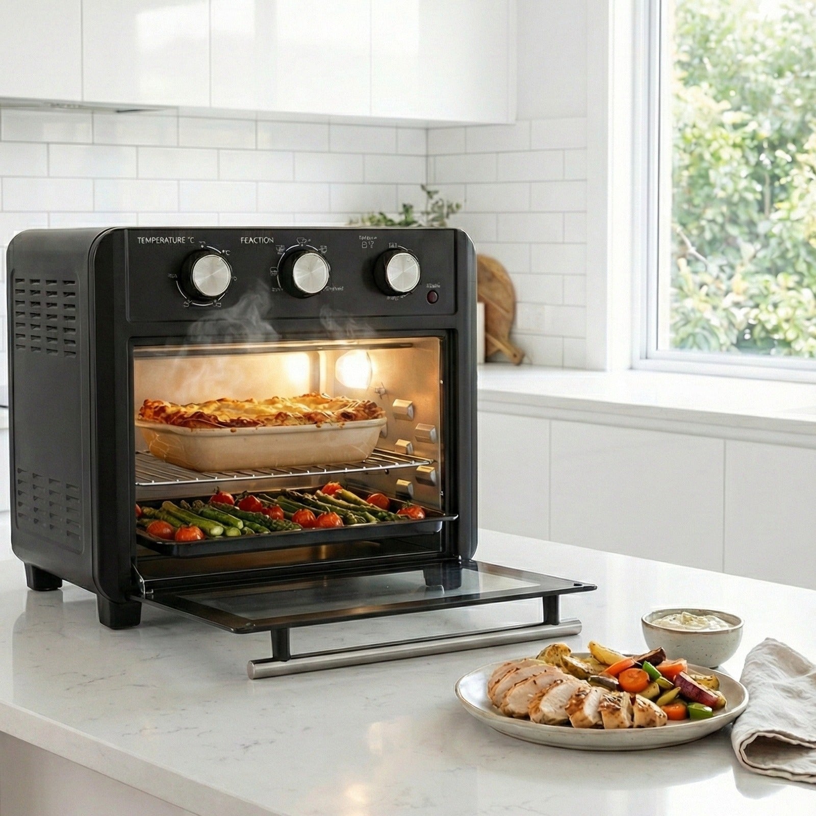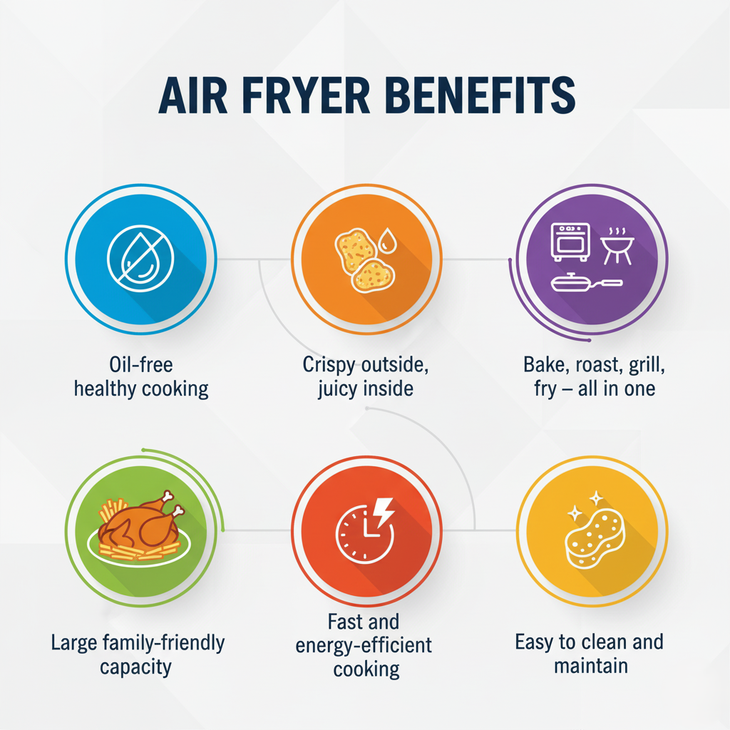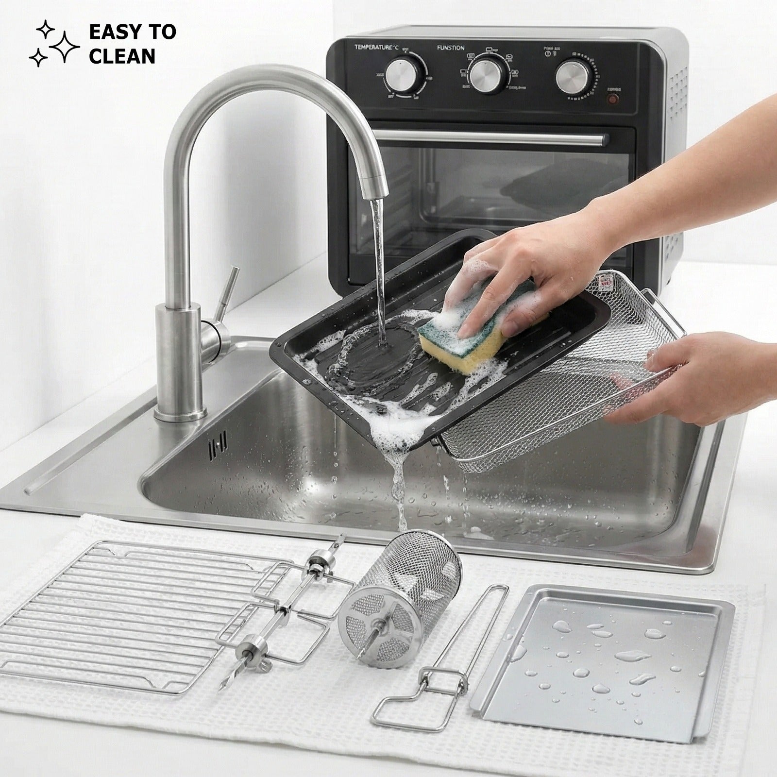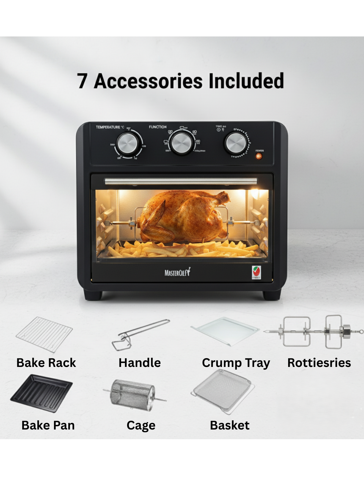 | Accessories | Bake Pan, Back Rack, Handle, Crum Tray, Rotisserie,Air Fryer Basket, and Cage |